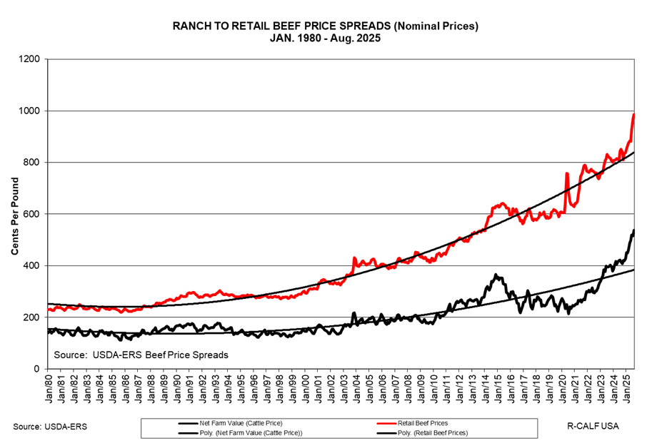 “The chart below clearly shows the long-term and ever-growing disconnect between cattle prices and consumer beef prices.”