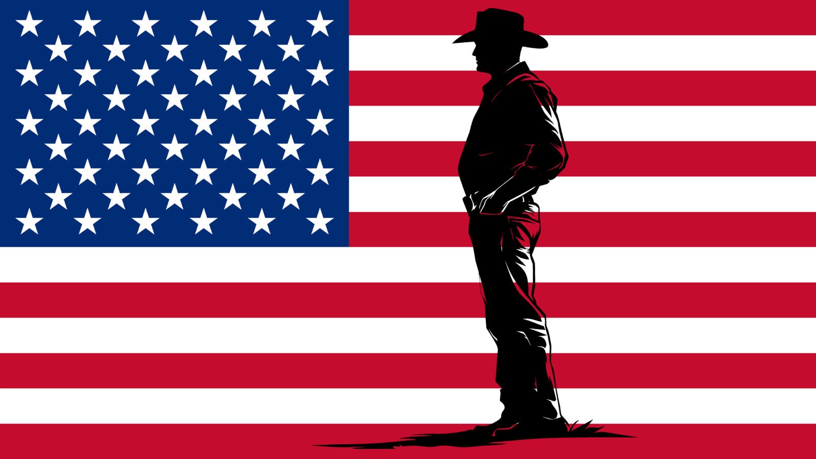Silhouette of a Rancher on an American Flag